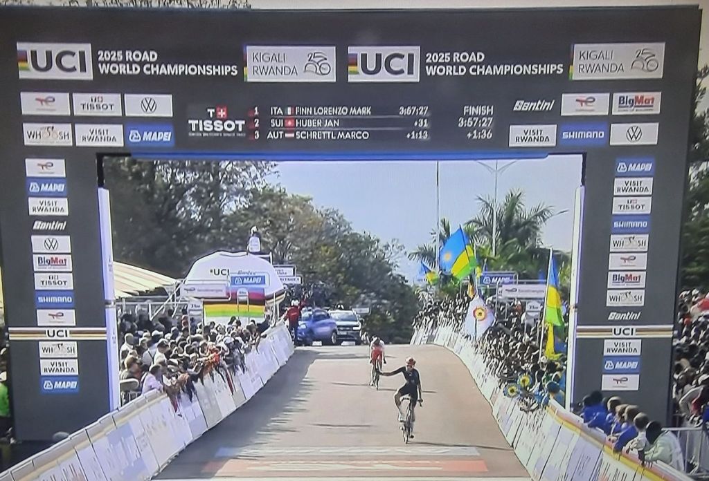 El italiano Lorenzo Finn se ha proclamado campeón del Mundo en la categoría Sub 23 en Ruta en la prueba disputada en Ruanda y Héctor Álvarez ha firmado la cuarta plaza, tras dinamitar la carrera en los últimos kilómetros. El combinado nacional, que ha dirigido de manera magistral Pascual Orengo, ha logrado también que tanto Pau Martí, sexto, como Adriá Pericas, noveno, entren dentro de los diez primeros. Segundo ha sido Jan Huber y tercero Marco Schrettl. España jugó a ganar y aunque no tuvo el premio de las medallas sí demostró estar con los mejores y su gran trabajo de equipo quedó patente desde la primera peraleda.