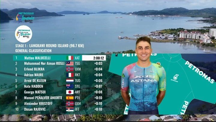 Matteo Malucelli ha sido el ganador de la etapa inicial del Petronas Le Tour de Langkawi y Manuel Peñalver (Polti VisitMalta) finaliza cuarto. El corredor italiano del XDS Astana Team, que alcanzó su tercera victoria de la temporada, superó al noruego Erlend Blikra (Uno-X Mobility) y al neerlandés Arvid de Kleijn (TTudor Pro Cycling Team), quienes entraron 2° y 3°, respectivamente.