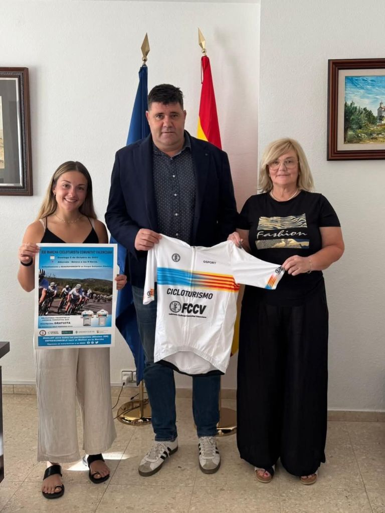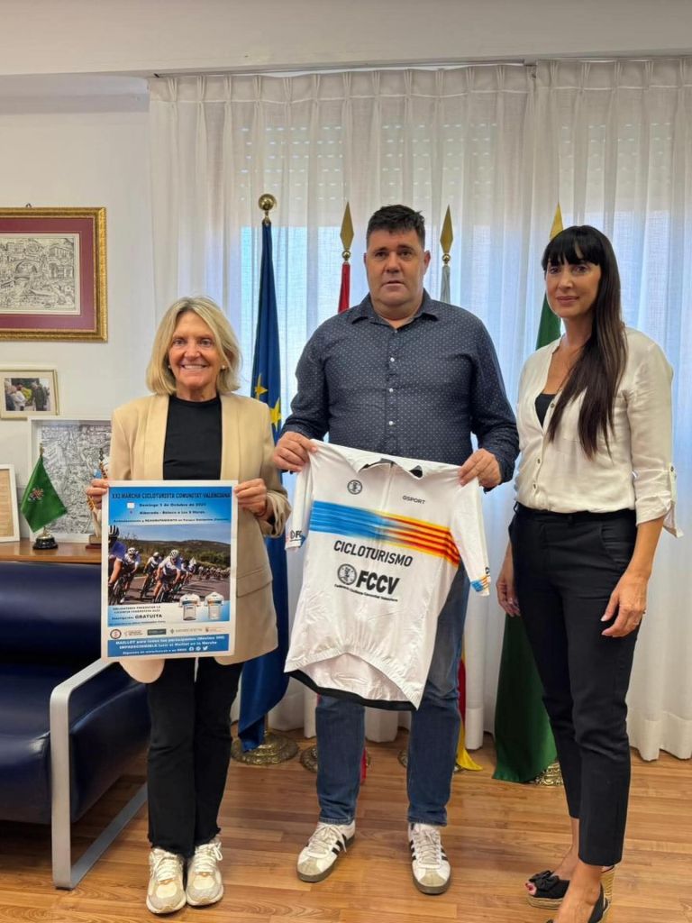 Esta mañana, el presidente de la FCCV José Enrique Gutiérrez y la presidenta de la comisión de cicloturismo Clara Santamaría, se han acercado a las localidades de Bétera y Casinos, donde les han recibido la alcaldesa de Bétera Elia Verdevio junto con la concejal de Turismo María Benimelli; además de María López, concejal de juventud y deporte de Casinos.