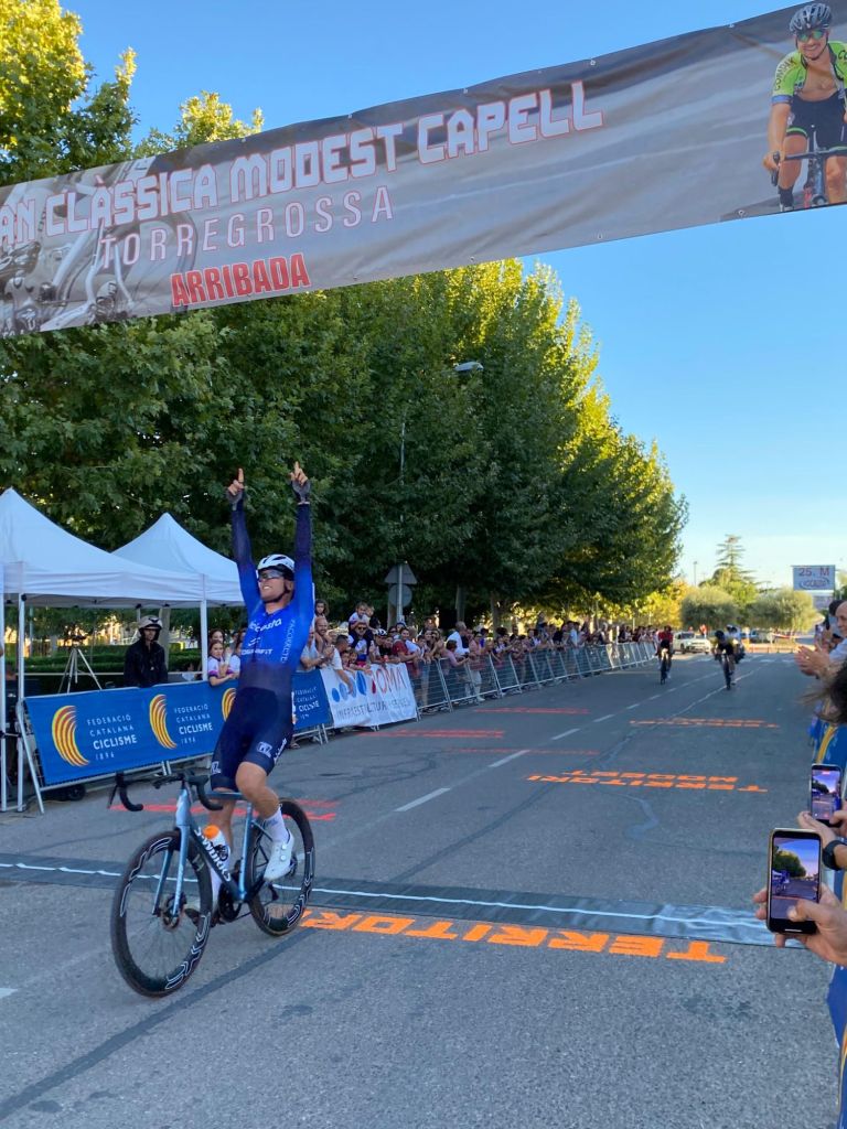 Alejandro Gómiz (BiciCosta) se ha impuesto hoy en Torregrossa en la 6ª Gran Clàssica Modest Capell, última prueba de las Grandes Clásicas – 9º Trofeo Joan Casadevall. El almoradidense, que venía de vencer en el 56 Trofeu Sant Bertomeu, ha superado a sus compañeros de fuga Pau Doménech (High Level Gsport) y Jaume Figuls (MPGroup). Ha mirado al cielo y ha tenido un gesto emotivo en recuerdo del desaparecido Modest Capell, que falleció en 2019 atropellado mientras entrenaba.