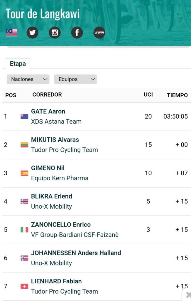Joris Delbove ha conquistado la 29ª edición del Tour de Langkawi. En la última etapa se ha impuesto Aarón Gate por delante de Alvaras Mikutis y del ciclista español del Kern Pharma, Nil Gimeno. El Polti VisitMalta de Manuel Peñalver ha sido el mejor equipo.