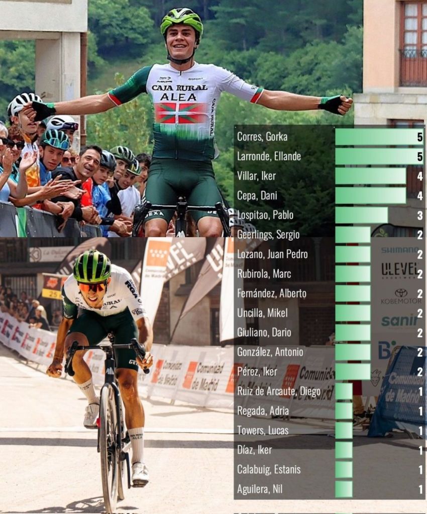 Más allá de las 43 victorias, Filial Caja Rural-Alea ha sido capaz de brindar distintas oportunidades a una amplia y talentosa plantilla, tal y como prueba que hasta diecinueve de sus ciclistas hayan sido capaces de aportar al menos un triunfo. Entre los más destacados, Gorka Corres y Ellande Larronde -ambos con cinco- y Daniel Cepa e Iker Villar, con cuatro. Cepa levantó los brazos en la última etapa de la Volta a Galicia, Trofeo Casa Luisa-Ayuntamiento de Ayegui, segunda etapa de la Vuelta a Ávila y la etapa inicial de la Vuelta Ciclista a Madrid Sub 23 . También conquistó las Metas Volantes de la Volta a Galicia, el maillot de los Puntos en la Vuelta a Madrid y el premio al mejor joven de la Vuelta a Castilla y León.