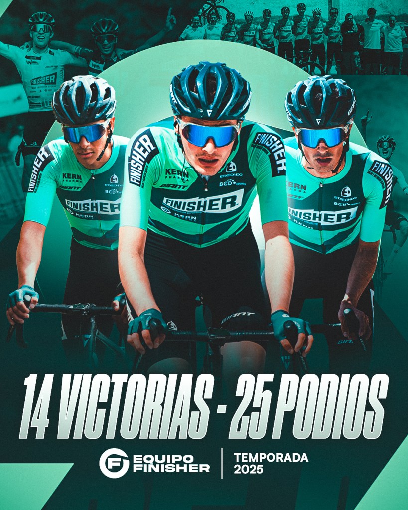 Concluye una temporada 2025 en la que el Equipo Finisher ha continuado su senda de grandes resultados, aunando los éxitos deportivos con el espíritu formativo que es la base de la estructura desde hace más de tres décadas. 14 victorias han sido la punta de lanza de un año en el que se han reforzado los valores del equipo centrados en el crecimiento de los ciclistas como deportistas y como personas.