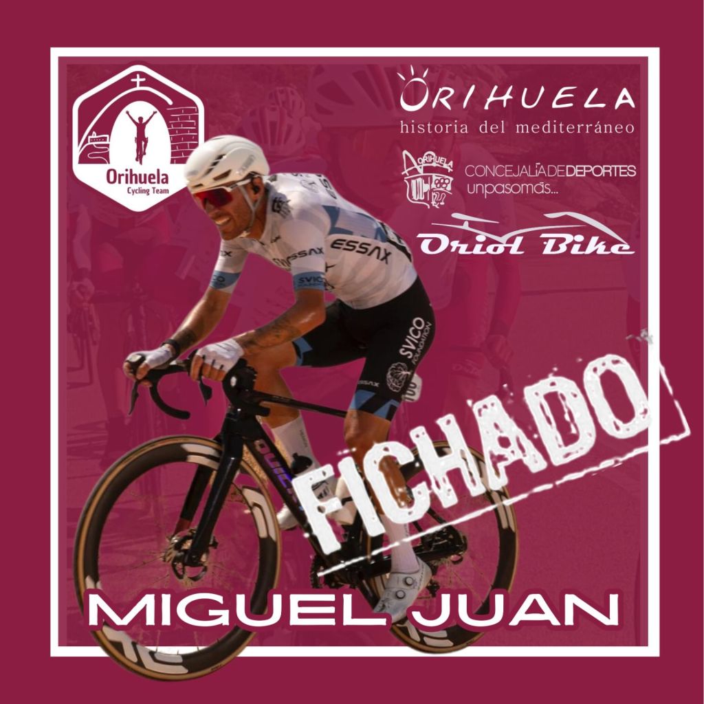 Miguel Juan Pérez (Novelda, 1 de diciembre de 1993) llega al Orihuela Cycling Team como refuerzo tras su paso por el Essax. Un corredor de equipo imprescindible en todo grupo ciclista. «Para mí, este fichaje significa dar continuidad a un trabajo que llevo realizando desde hace varios años, desde que empecé a montar y competir en ciclismo. Es una forma de seguir creciendo y mantener la ilusión por este deporte», afirma el corredor noveldense.