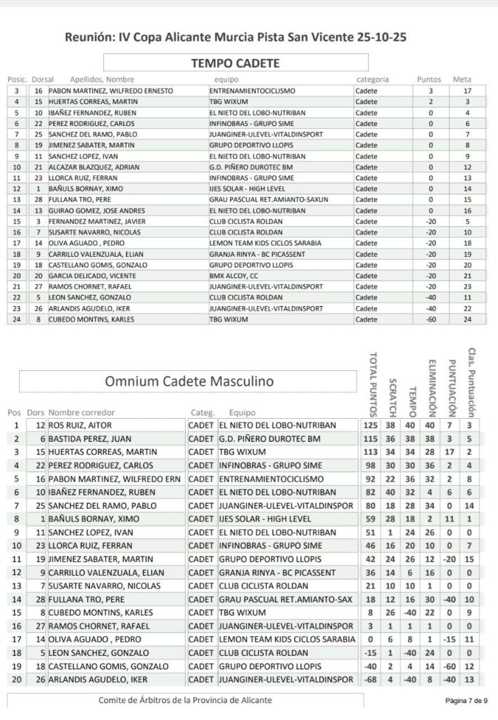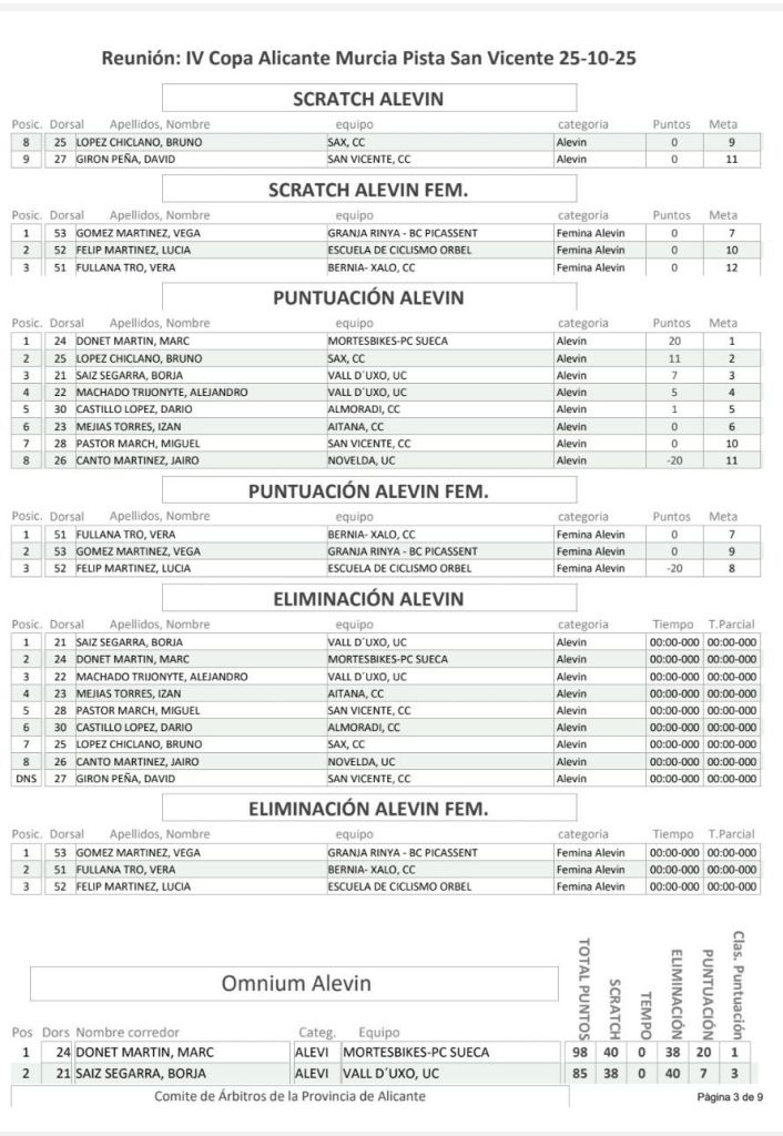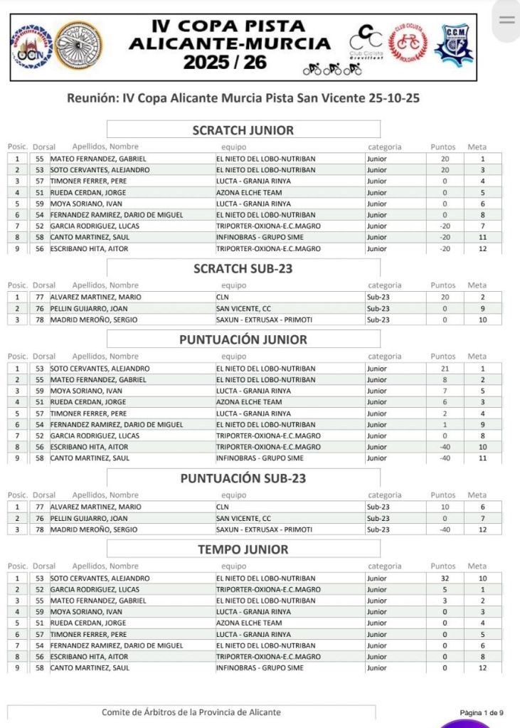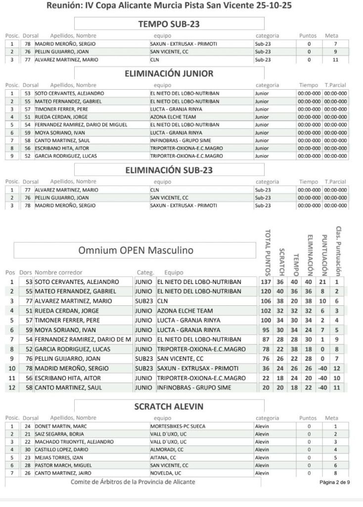 El VI Trofeo de Pista Ayuntamiento de San Vicente del Raspeig ha dado el banderazo de salida a la 𝗜𝗩 𝗖𝗼𝗽𝗮 𝗔𝗹𝗶𝗰𝗮𝗻𝘁𝗲 𝗠𝘂𝗿𝗰𝗶𝗮 𝗱𝗲 𝗣𝗶𝘀𝘁𝗮, disciplina de Omnium. Los júniors Amanda Miravet (Ciclismo Base UPV) y Alejandro Soto (El Nieto del Lobo-Nutriban) han logrado el triunfo de la categoría open.