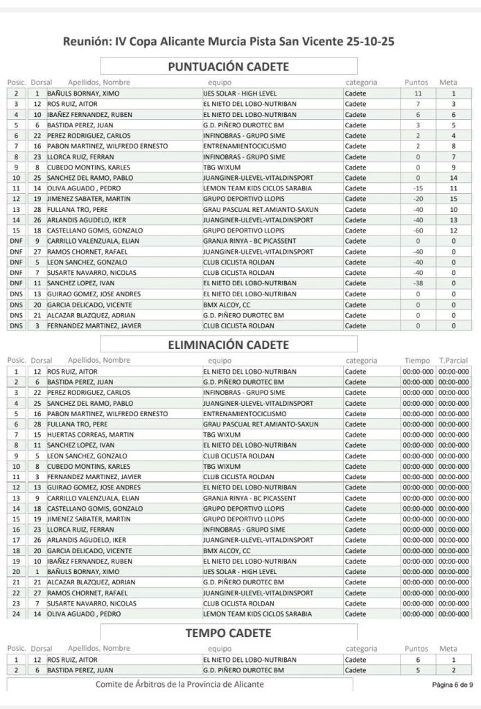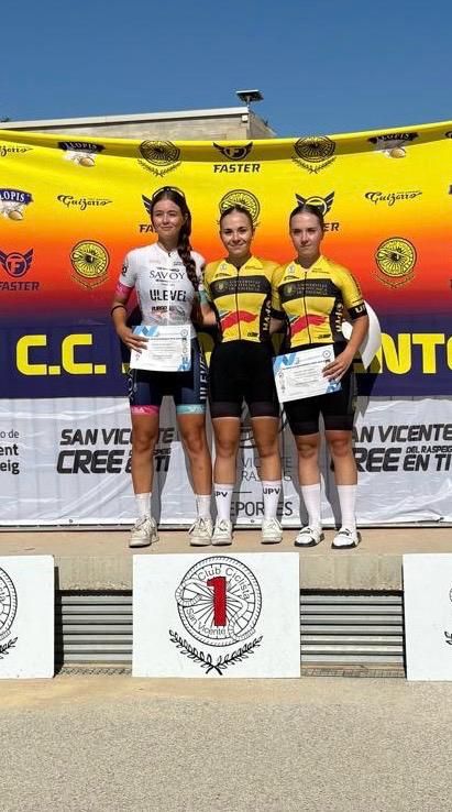 Valeria Almena (Ciclismo Base UPV), y Adriana Segura (Valverde Team-Ricardo Fuentes), y Martina Menor (Ciclismo Base femenino) completaban el podio Cadete femenino. En la categoría masculina lo hicieron Aitor Ros (El Nieto del Lobo), Juan Bastida (Piñero-Durotec) y Martín Huertas (TBG Wixum).