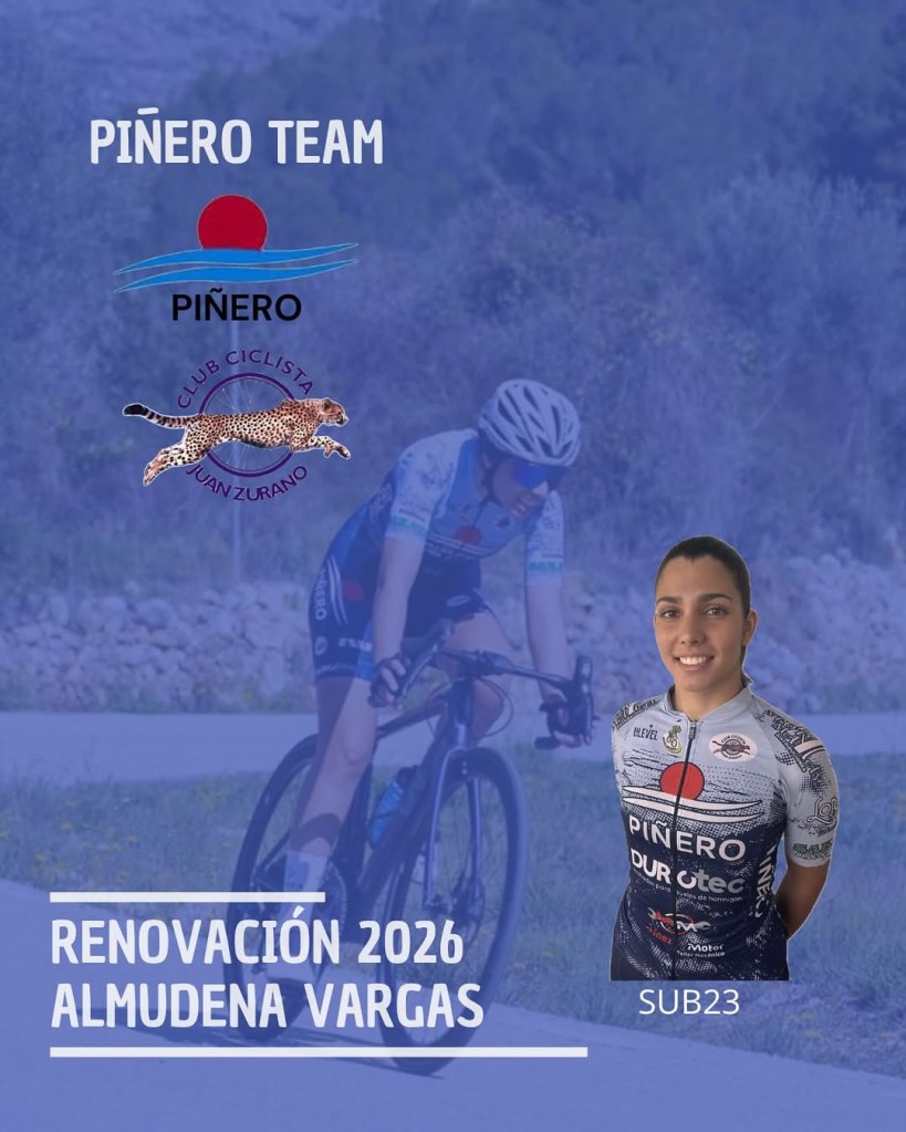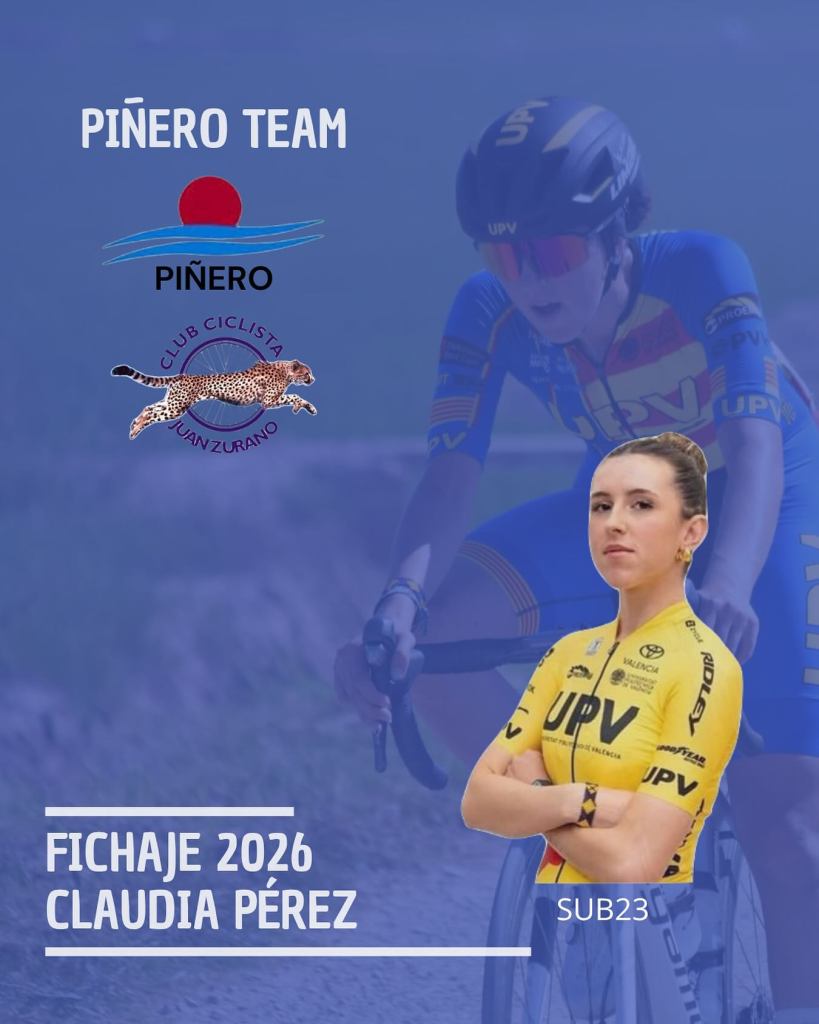 Claudia Pérez (Ibi, 16/11/2005) afrontará en el Piñero Team su tercer año en la categoría Sub23, proveniente del UPV. Llega como campeona autonómica de ruta. Pese a su juventud, su trayectoria está sembrada de buenos resultados y grandes actuaciones, por lo que está llamada a ser uno de los baluartes del equipo. «La verdad que es un equipo muy familiar y por el que he fichado por la tranquilidad que me dan y las amistades que tengo en el. Ya tengo muchas ganas de empezar la temporada. Este año sin tanta presión, ya que con trabajo y estudios me es difícil compaginarlo todo, intentaré disfrutar todo lo que pueda esta temporada», apunta la ibense.