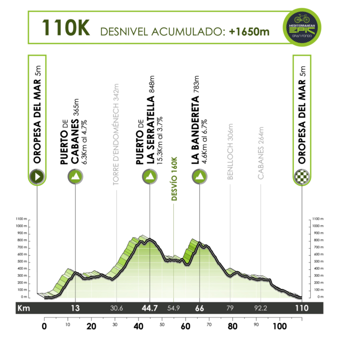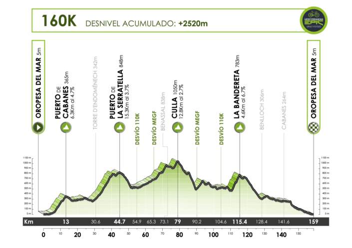 Entre los ascensos más emblemáticos figuran el Puerto de Cabanes, La Serratella, Ares del Maestrat, Culla y La Bandereta. Los puntos de control estarán situados en Albocàsser (km 55), donde se marca el desvío hacia la ruta de 110 kilómetros y en el kilómetro 65, que determina el recorrido de 160 kilómetros, con hora de corte fijada a las 11:00 horas.