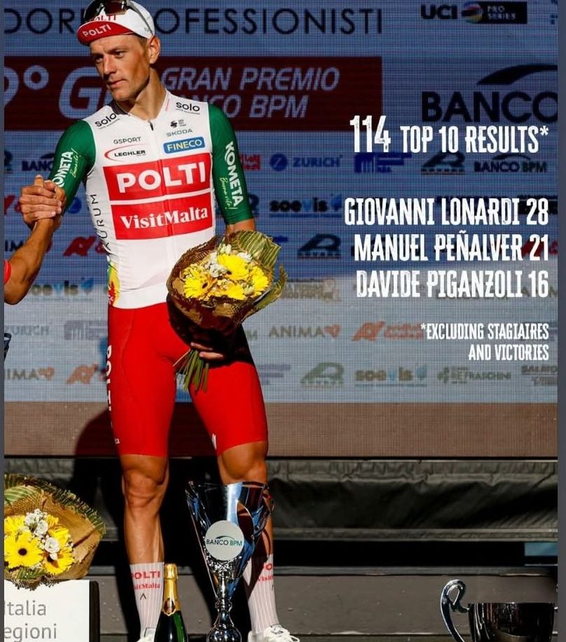 Últimos pero no menos importantes, los éxitos en la Copa Italiana de las Regiones: Mattia Bais mejor escalador, Piganzoli mejor joven, Polti VisitMalta mejor equipo. Casi 9 meses después y al borde de las 200 pruebas disputadas, en la temporada más larga de la historia de Polti VisitMalta.