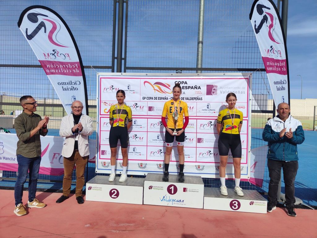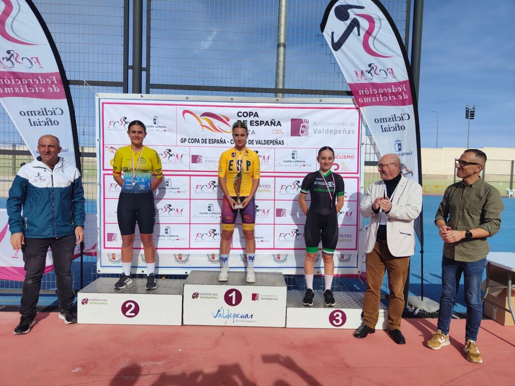 Los juniors Alejandro Soto (Murcia) y Marina Fernández (Bike Box) y los cadetes Pablo Sánchez (EC Pinedo) y Enara Pérez (Navarra), en el apartado de fondo, así como los júniors Pepe Arques (Lucta-Granja Rinya) y Yanara Carrión (Teika-Ale) y los cadetes Francisco Lozano (Vicenç Reynés) y Vega Iglesias (Castilla y León), en el de velocidad, han sido los ganadores de la primera manga de la Copa de España, celebrada este fin de semana en Valdepeñas (Ciudad Real). AVANCE