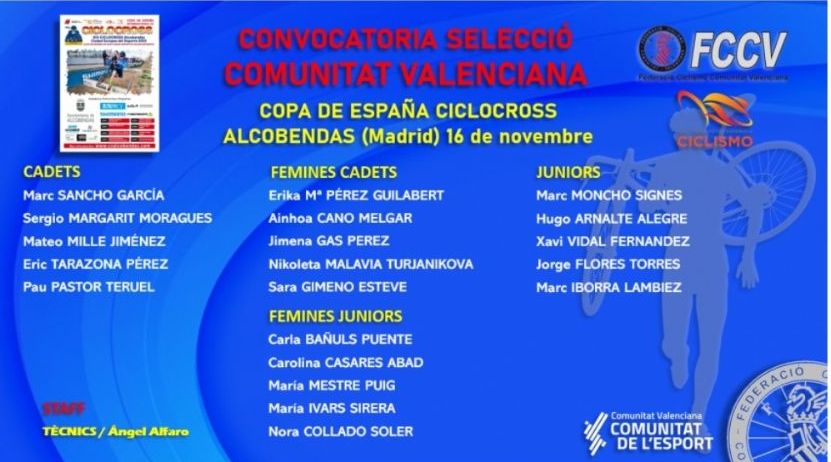 Las selecciones Cadete y Júnior de la Federació de Ciclisme de la Comunitat Valenciana han partido esta mañana a Alcobendas donde el domingo 16 de noviembre disputa la quinta prueba de la Copa España CX.