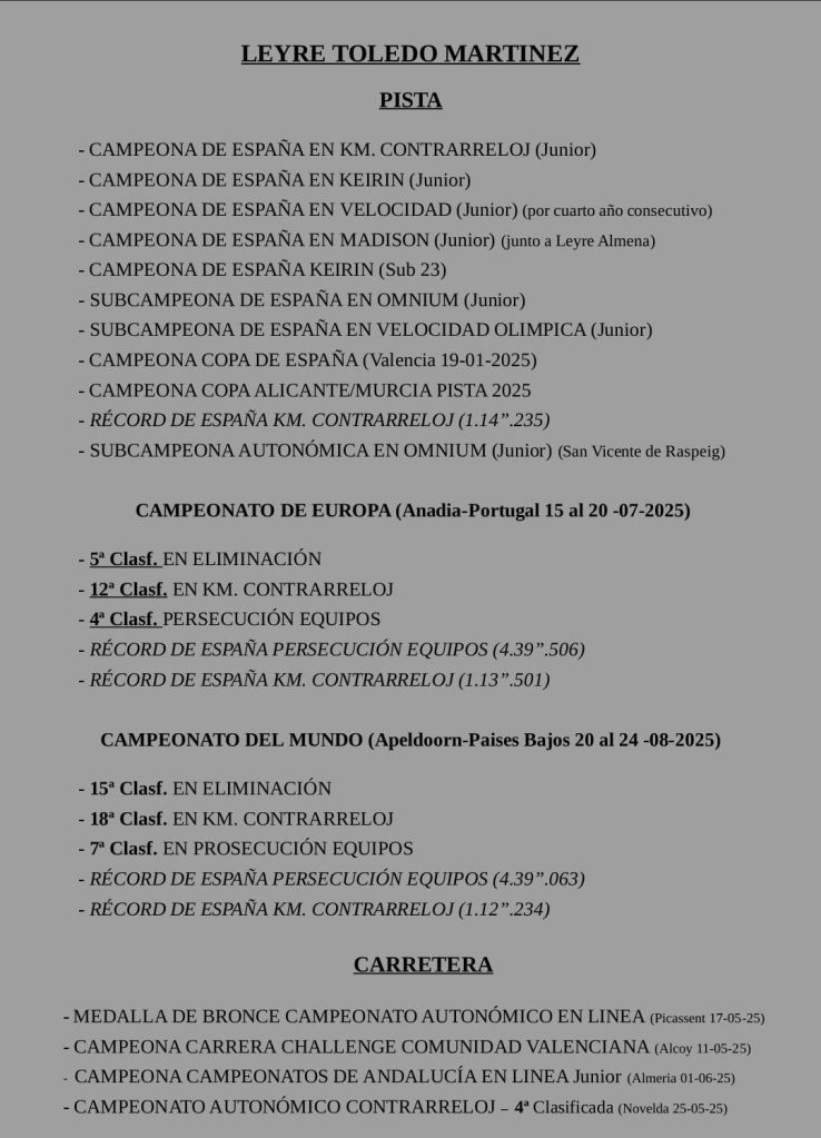 Por su parte, los logros de Leyre Toledo son los siguientes:
