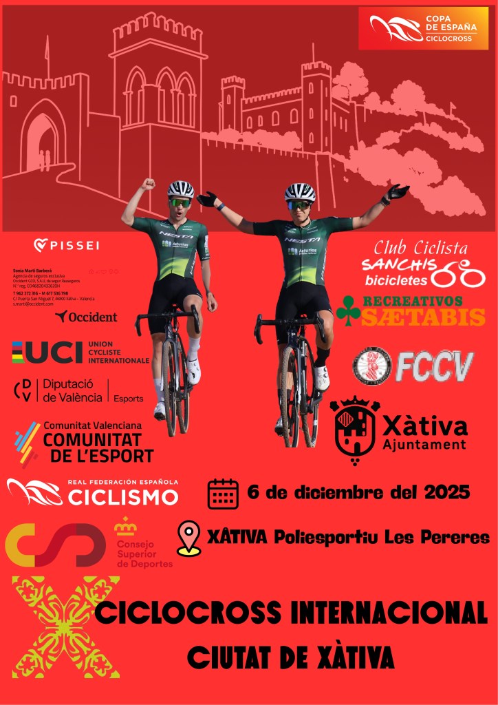 Los días 6 y 7 de diciembre, Xátiva y Cocentaina, o lo que es lo mismo, el Ciutat de Xátiva y Trofeo Rafa Valls-Fira Tots Sants pondrán el punto y final a la Copa de España CX. Sofía Rodríguez, en féminas, y Raúl Mira, en Sub 23, llegarán como líderes a dichos duelos dispuestos a conseguir en propiedad dichos preciados maillots amarillos. Va a ser un fin de semana intenso. Los organizadores han diseñado dos circuitos muy atractivos.