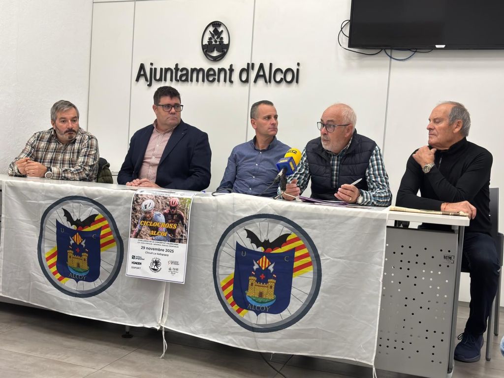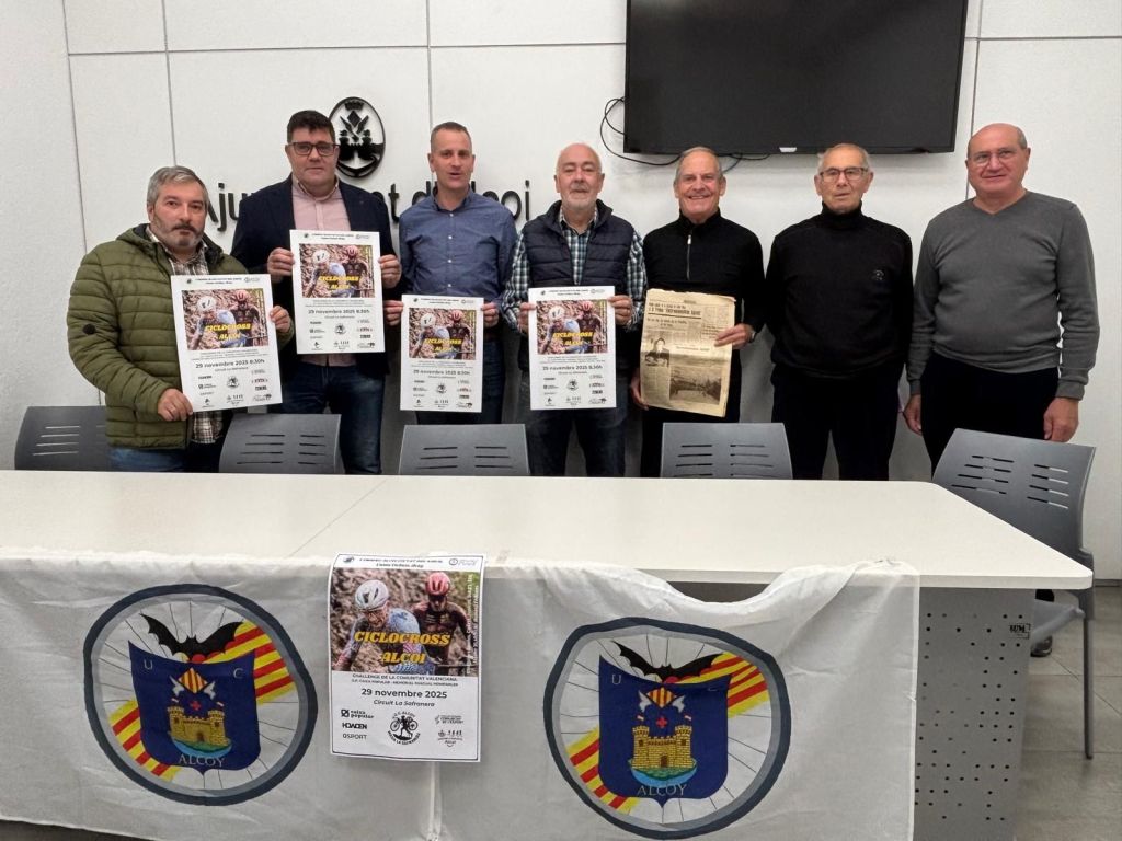 Hoy ha tenido lugar en el Ayuntamiento de Alcoy la presentación del I Trofeu Alcoi CIUTAT DEL NADAL de Ciclocross que se disputará este sábado 29 de noviembre en el Circuit de La Safranera. Han intervenido en el acto Carlos Pla, gerente de la Masia La Safranera; Enrique Gutiérrez, predidente de la FCCV; Albert Belda, concejal de Deportes de Alcoy; Rafael Zamorano, presidente de la Unión Ciclista Alcoy; y Enrique Castello, primer ganador del 1° Trofeo de Ciclocros disputado en Alcoi en el año 1964 y en el año 1965 en la Glorieta de Alcoy.