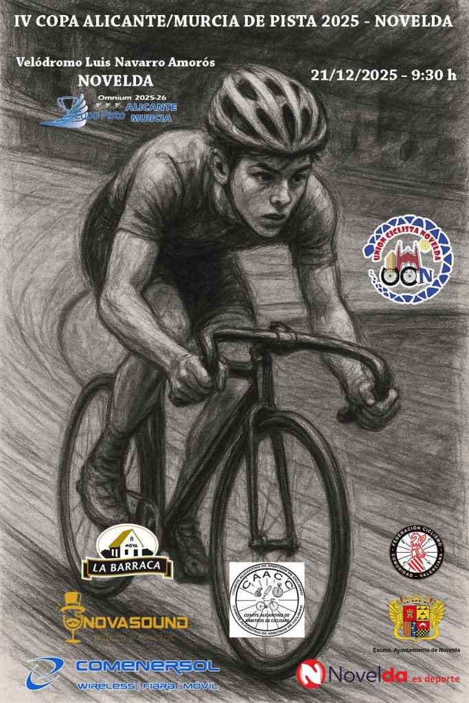 La IV Copa Alicante Murcia de Omnium tendrá su cierre el día 21 de diciembre en el Velodromo Luis Navarro de Novelda. Quedan 3 citas pendientes con las de Novelda (14 de diciembre) Molina (20 de diciembre) y Novelda (21 de diciembre) que repartirá los maillots de esta cuarta edicion.