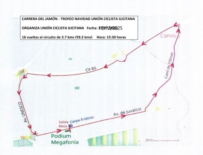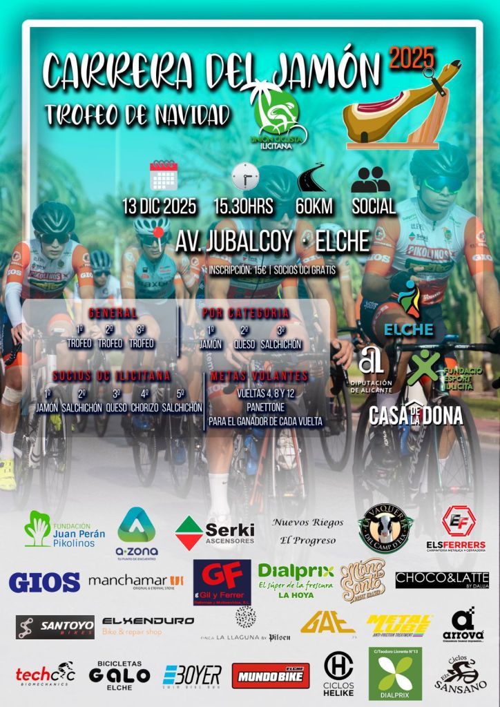 El sábado, 13 de diciembre, la Unión Ciclista Ilicitana organiza el Trofeo de Navidad-Carrera del Jamón 2025. La competición tendrá lugar en la Avenida de Jubalcoy de Elche. La salida se dará a las 15.30 horas y contará con 60 kilómetros de recorrido. Se darán 16 vueltas al circuito de 3.7 kms.