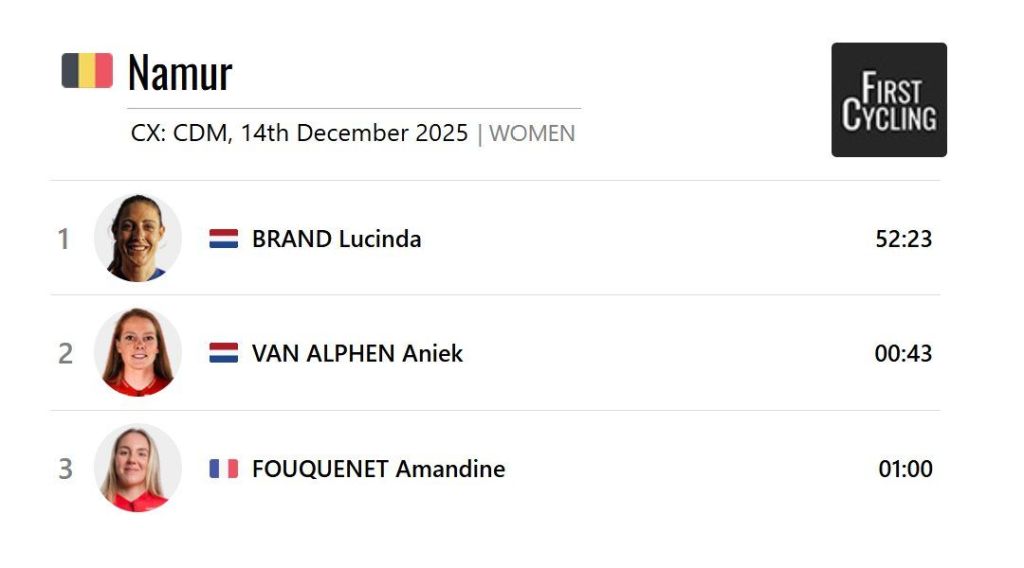 En féminas, la neerlandesa Lucinda Brand apeló hoy a su experiencia para ganar la cuarta prueba de la Copa del Mundo de Ciclocross 2025-2026 en el circuito de la Ciudadela de Namur.
