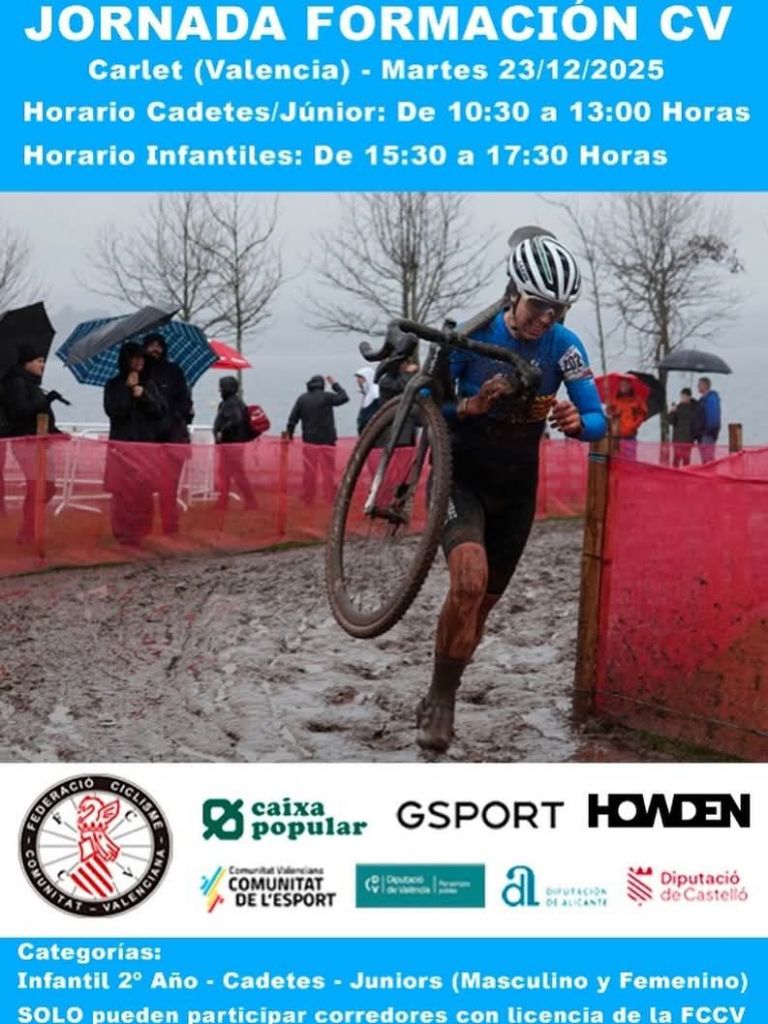 El próximo 23 de diciembre, en la localidad de Carlet, tendrá lugar una jornada técnica de Ciclocross dirigida a jóvenes corredores de las categorías Júnior, Cadete e Infantil.