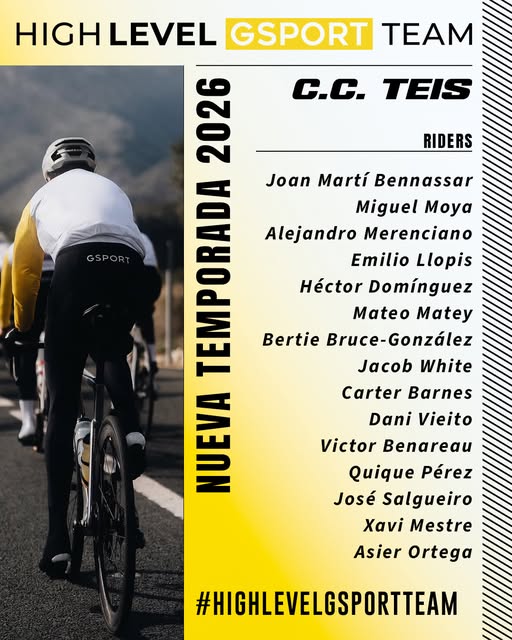 Xavi Mestre (24 de octubre de 2007) y Asier Ortega (Xàtiva, 22/11/2007) correrán en 2026 a las órdenes de Antonio Llopis en el equipo High Level Gsport Team en la categoría Élite y Sub 23 tras hacer una buena campaña como júniors. El conjunto gallego ha hecho oficial la plantilla con la que competirá en el pelotón amateur y tratará de seguir cosechando triunfos como los logrados en 2025. Todavía podría reforzarse con algún ciclista más.