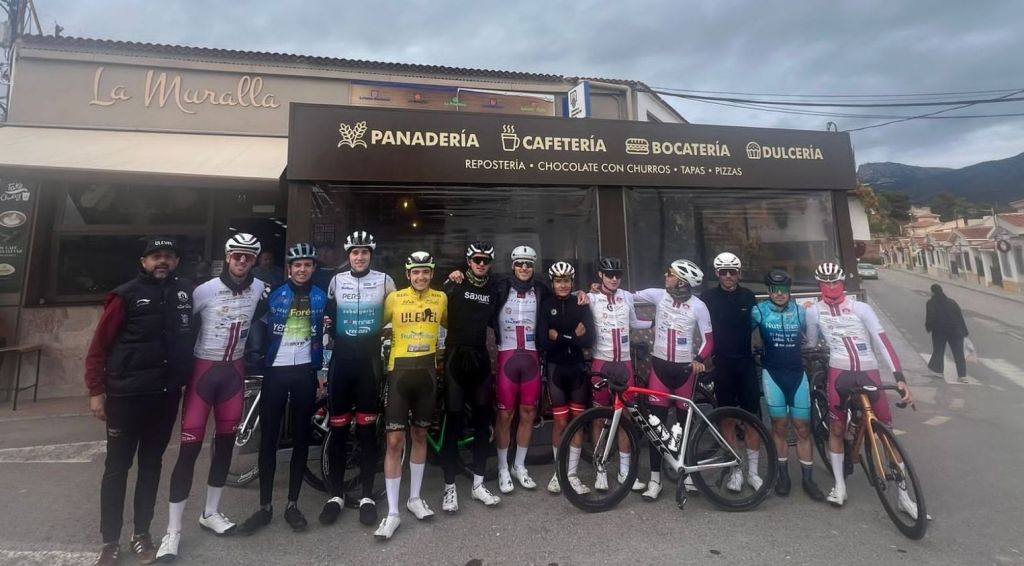 El Orihuela Cycling Team que dirige Manuel Mateo ha realizado hoy un entrenamiento grupal de nivel. Han sido 185 kilómetros y 1.950 metros de desnivel positivo. El conjunto ha partido de Orihuela y ha subido Sierra España antes de almorzar en Aledo, en el restaurante La Muralla. Luego estaba previsto subir la Cresta del Gallo antes de regresar al lugar de origen, pero la lluvia ha obligado a variar el trazado para evitar riesgos por el suelo mojado en la bajada. Jornada fantástica, con kilómetros para las piernas y horas de hacer grupo tan importante para una campaña tan larga y en la que la unión es vital a la hora de conseguir objetivos.