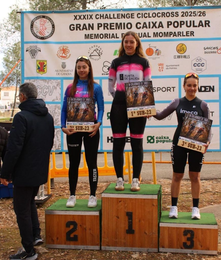 Andrés Fernández (Utiel) y María Filgueiras (XSM) se han impuesto hoy en el III Ciclocross de Tous prueba de la Challenge CX CV – Memorial Pascual Momparler Gran Premi Caixa Popular. Fernández ha estado acompañado en el podio Élite y Sub 23 por Ricardo Pellicer (Soulbikes) y Manuel Sánchez Aldeguer (Helike). Sara Bonillo (Sueca) y Raquel Pérez (AM Sonido) han entrado en meta por detrás de Filgueiras.