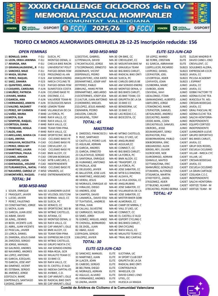 El domingo, en Orihuela, se pone el punto y final a la Challenge CX de la CV – Memorial Pascual Momparler 2025. Será en I Trofeo CX Almorávides, que repartira los maillots definitivos de la temporada 2025.