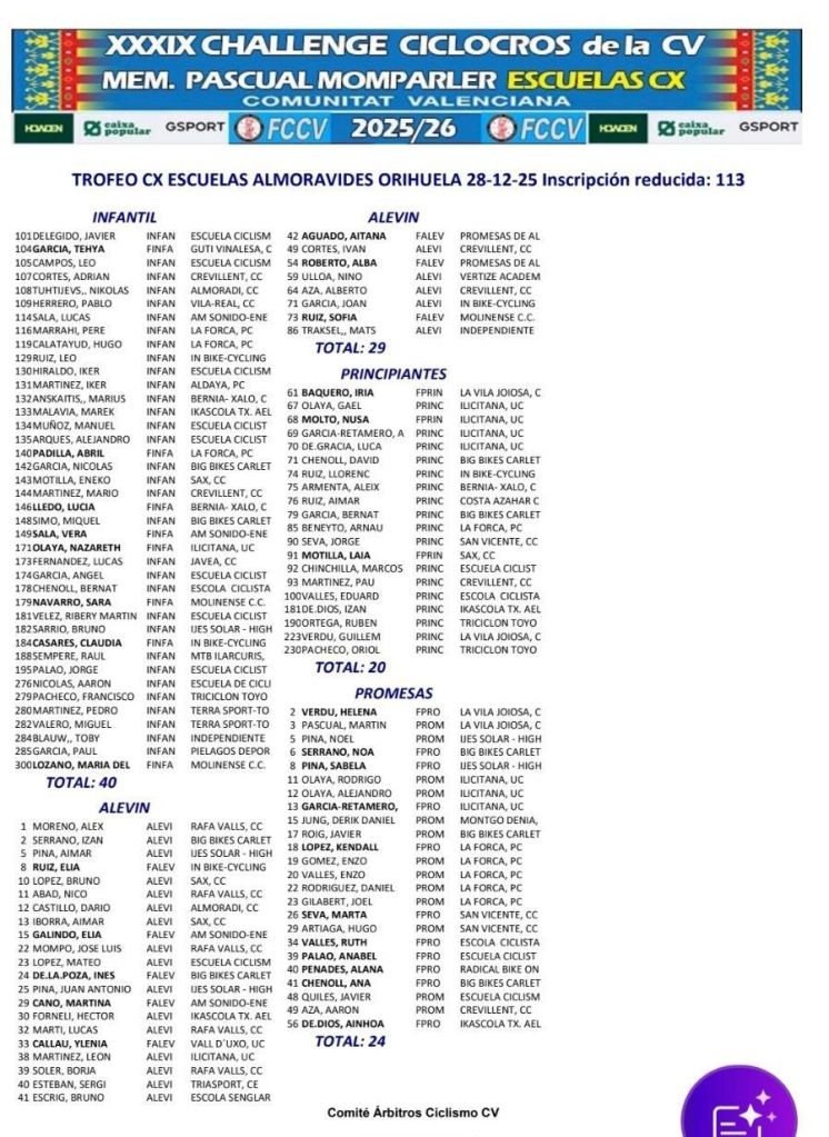 29/11 I CICLOCROSS ALCOI CIUTAT DEL NADAL. Clasificaciones