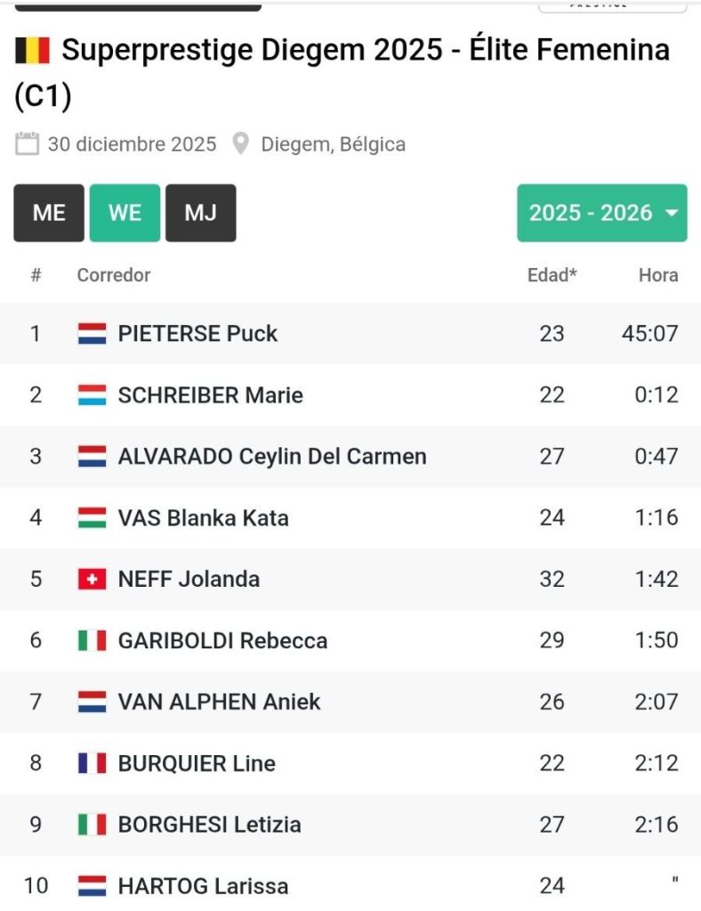 Puck Pieterse aprovechó la ausencia de Lucinda Brand para conseguir su primera victoria de la temporada en Diegem. Marie Schreiber y Ceylin del Carmen Alvarado.