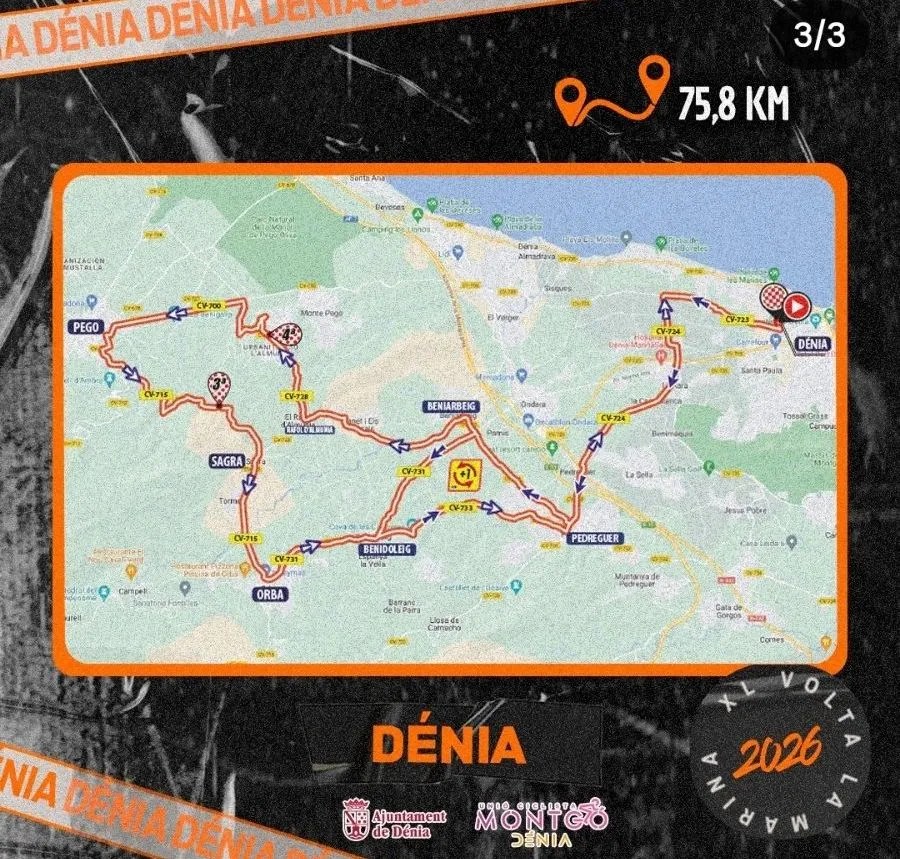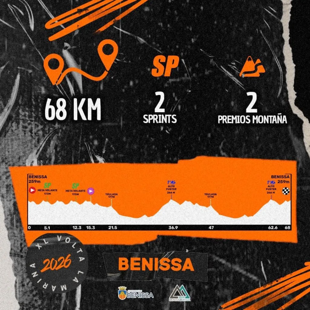 La organización de la Volta La Marina ya ha desvelado el recorrido de la edición de 2026 que comenzará en Teulada el 11 de enero y finalizará en Dénia, el 22 de marzo.