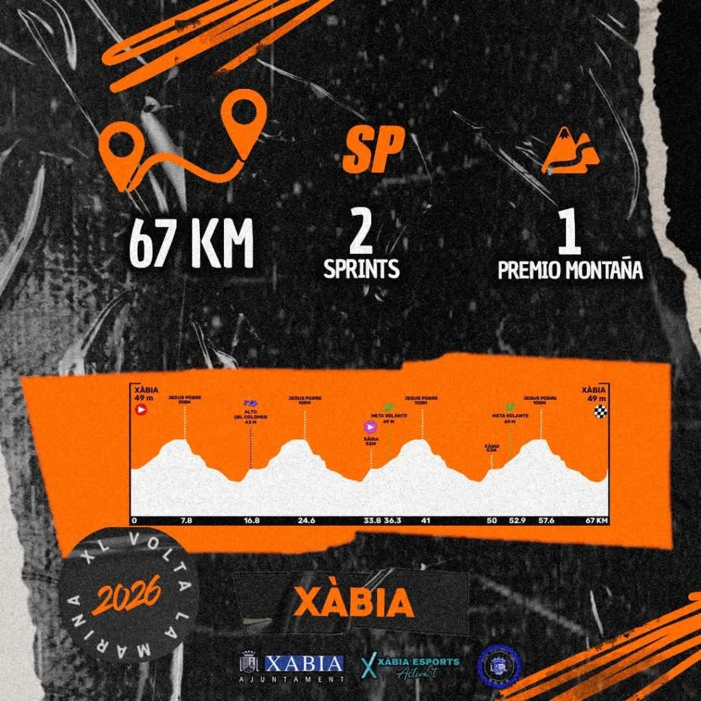 Etapa 2. 17 de enero de 2026. Xàbia (Jávea). 11h. XX Trofeo San Sebastián, con un recorrido de 67 km.