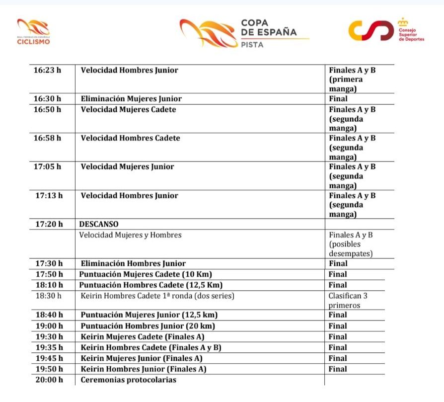 Como se recordará, debido a las previsiones meteorológicas, la competición se ha comprimido a una sola jornada el sábado. Se espera que el tiempo no juegue una mala pasada y pueda a llevarse a cabo la prueba.