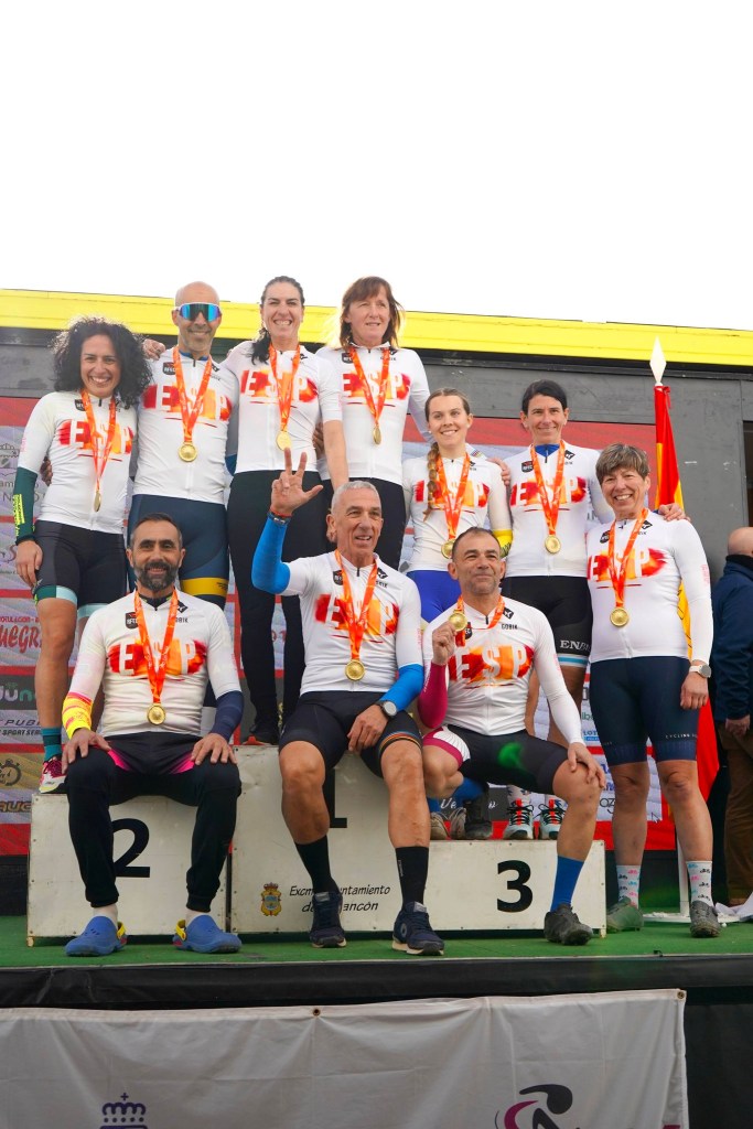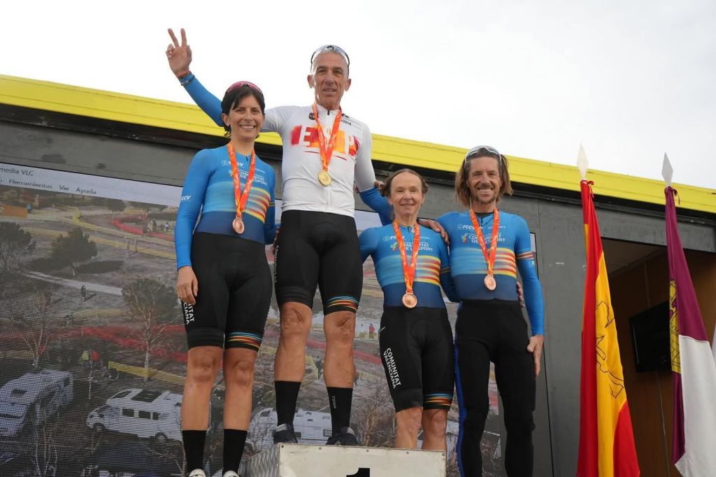 Abelardo Martínez, en M60B, y Carlos Sanchís, en M30B se han proclamado esta mañana en Tarancón campeones de España de CX como integrantes de la Selección FCCV. Por su parte, se han colgado el bronce, Enrique Soler, en M50B; Dany Díaz, en M30B; María Valero, en M40B Femenino; Natalie Turjanicova, en M50FA; e Iván Díaz, en M40A. Siete medallas del combinado autonómico que sumar a la de oro lograda el viernes en el Team Relay.