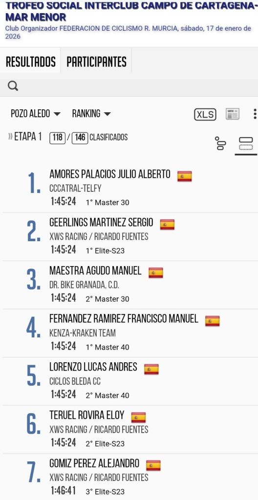 Julio Alberto Amores (Catral-Telfy) ha sido el ganador de la etapa inicial del XXXVI Trofeo Interclub Campo de Cartagena Mar Menor Región de Murcia que ha comenzado en San Javier. Sergio Geerlings (XWS) ha sido segundo y Manuel Maestra (Dr. Bike) tercero. Amores es el primer líder del Torneo.