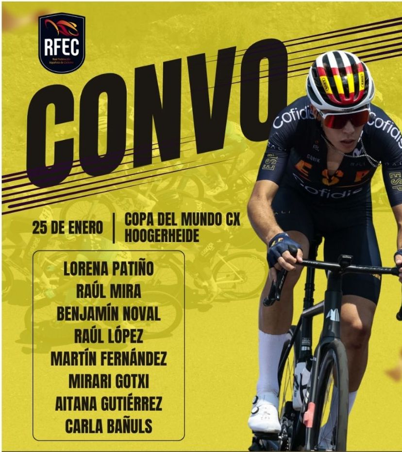 Javier Ruiz de Larrinaga, el seleccionador nacional, encabezará esta actividad en la que participarán ocho ciclistas, los sub23 Raúl Mira y Lorena Patiño y los júniors Benjamín Noval, Martín Fernández, Raúl López, Aitana Gutiérrez, Carla Bañuls y Mirari Gotxi.