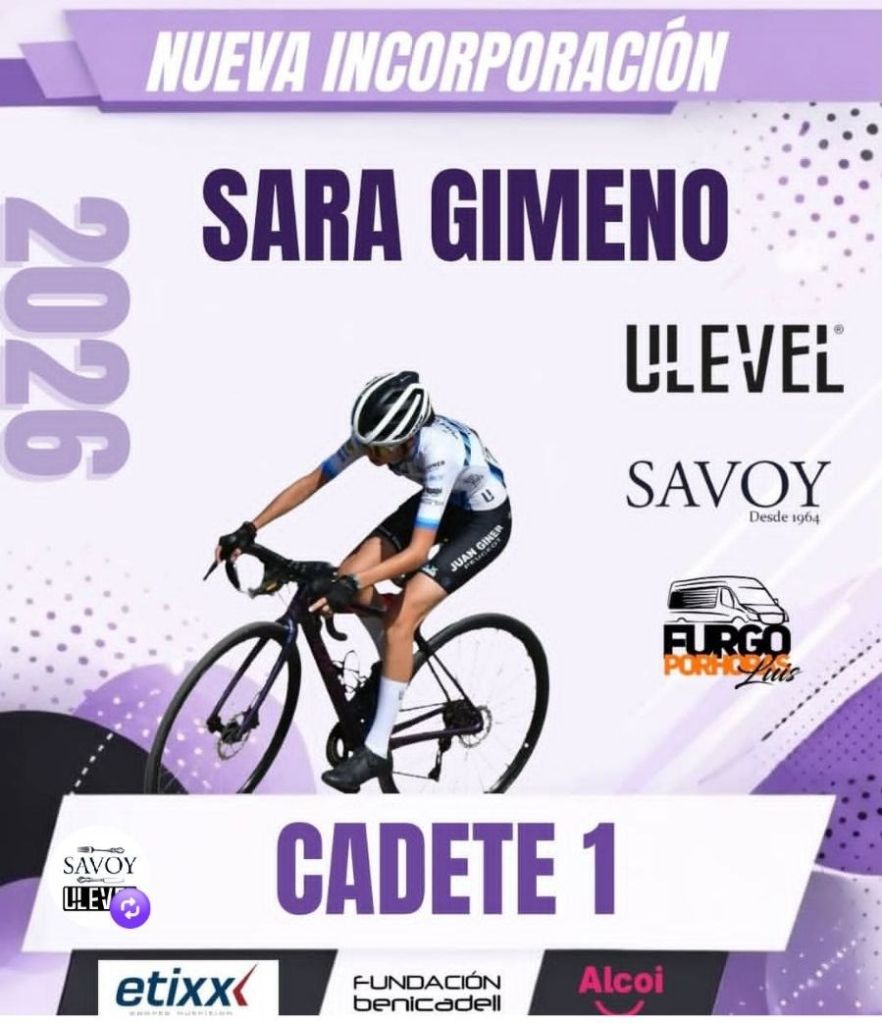 Sara Gimeno (Valencia, 7 de septiembre de 2011) vive en Castellar-Oliveral y acaba de ganar la medalla de bronce junto a Valeria Almena, en Madison, en el Campeonato de España de Mallorca de la categoría Cadete. Además, recientemente se proclamó campeona Autonómica de Ómnium en San Vicente del Raspeig. «Me siento contenta de los resultado obtenidos en Pista porque eran los primeros Campeonatos de España a los que iba y he podido representar a la Comunidad Valenciana. También estoy muy satisfecha por ganar el Campeonato Autonómico de Ómnium», afirma la corredora del Hostal Savoy Ulevel WTeam.
