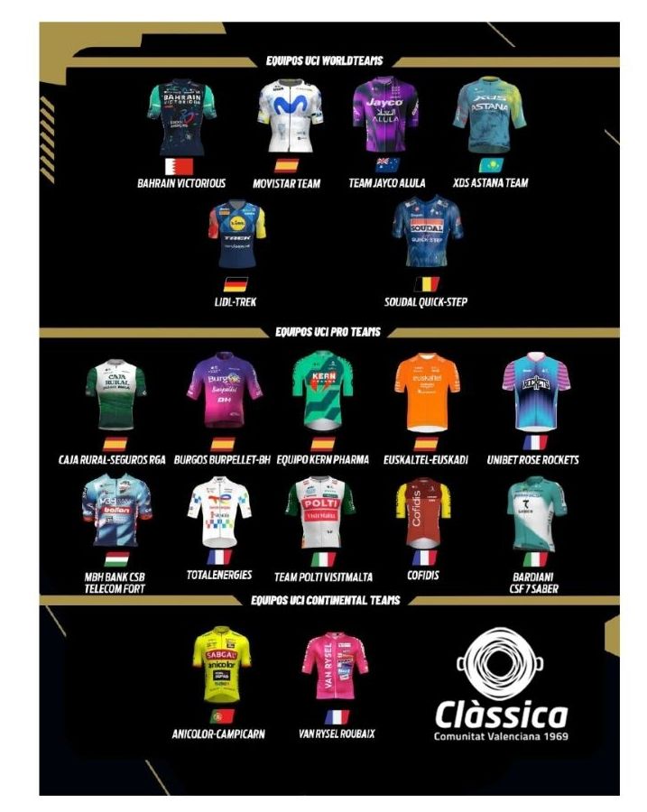 Un total de 18 equipos formarán el pelotón de la Clàssica CV 1969, de ellos hasta 6 de categoría UCI World Team.