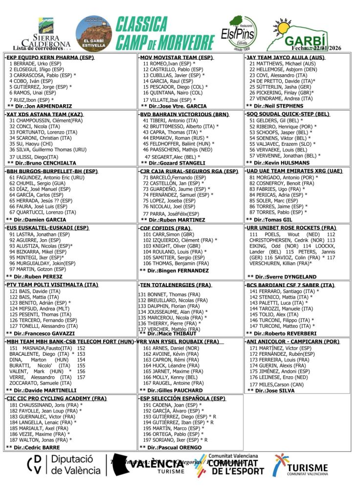 La Clàssica Camp de Morvedre 2026 supone hoy 23 de enero el pistoletazo de salida a las carreras de un día en la nueva temporada de ciclismo en carretera. La prueba valenciana que disfrutará de su segunda edición, con Movistar Team y UAE Team Emirates XRG protagonistas.