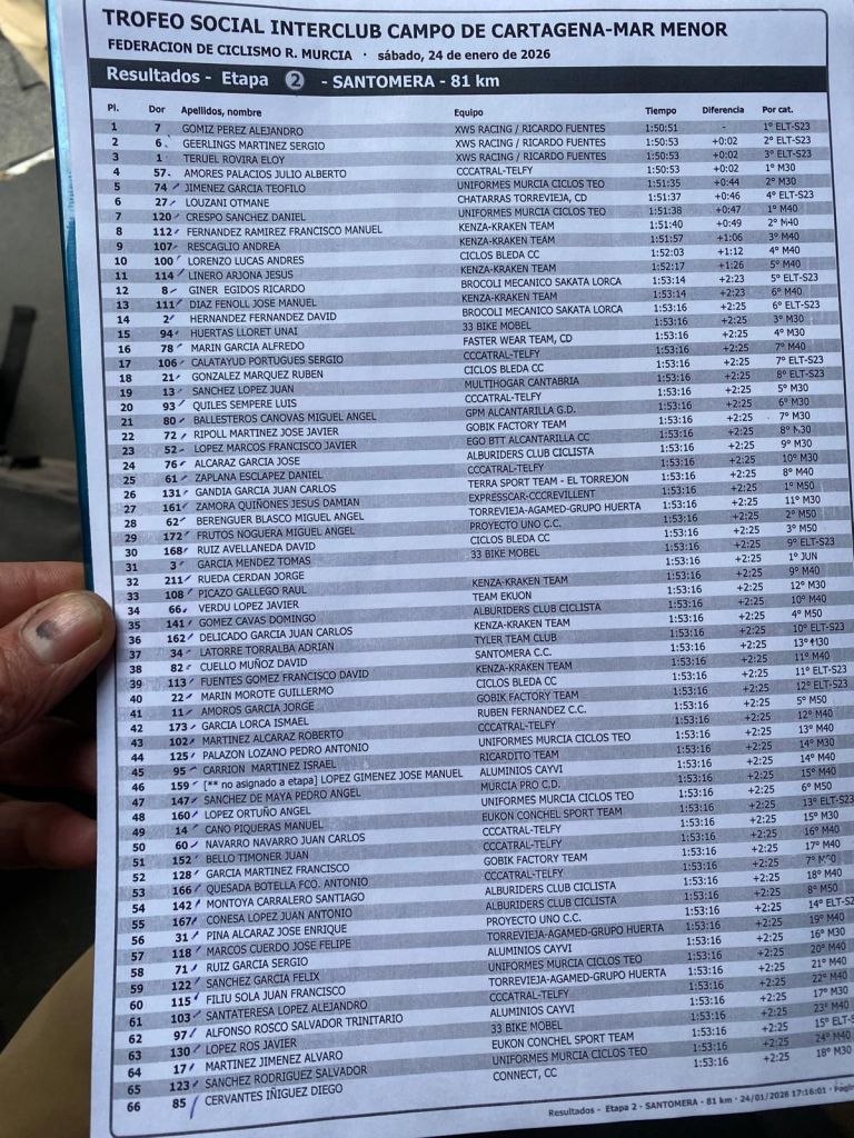 Alejandro Gómiz (XWS Racing-Ricardo Fuentes) se ha impuesto hoy en Santomera en la segunda prueba del Interclub Campo de Cartagena-Mar Menor. Segunda plaza para Sergio Geerlings (XWS Racing), que por el «puestometro», ha arrebatado el maillot de líder del Torneo a Julio Alberto Amores (Catral-Telfy), que ha terminado cuarto después de ganar en la anterior jornada.