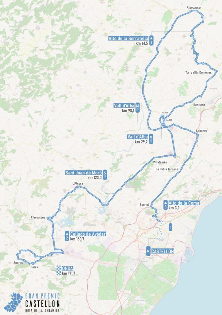 El trazado mantiene las principales dificultades de 2025: el Alto de la Serravella antes de la mitad del recorrido y el Collado de Ajódar, que se corona a poco más de 10 km de meta. El final en Onda incluye un repecho con pendiente de hasta el 12%, donde el portugués António Morgado se impuso en la última edición.