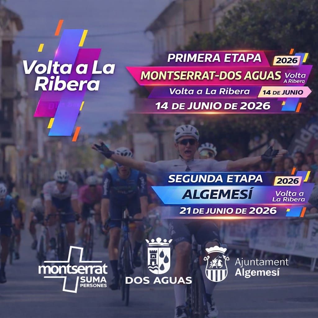 La Volta a la Ribera 2026 ya es una realidad y este año la prueba se disputará en dos fines de semana diferentes, los días 14 y 21 de junio, con dos etapas muy distintas entre sí y un planteamiento deportivo que promete espectáculo desde el primer día. Está reservada a las categorías Élite y Sub-23, Máster 30, Máster 40, Máster 50 y Máster 60. Gracias al apoyo de los ayuntamientos de Montserrat, Algemesí y Dos Aguas esta ronda llega con mucha fuerza a su tercera edición desde la recuperación de esta carrera mítica del calendario valenciano. Las inscripciones se abrirán próximamente.