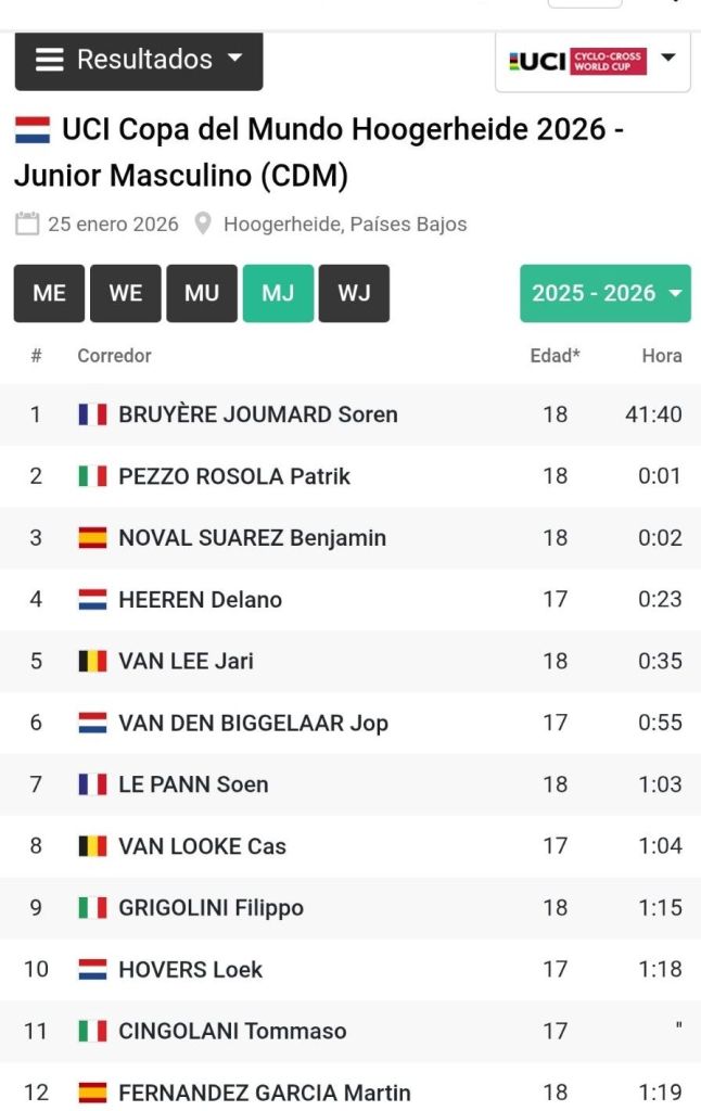 En Júniors Masculino, Benjamín Noval ha subido al podio en la Copa del Mundo de Hoogerheide. Sólo le han superado Soren Bruyére y Patrik Pezzo.