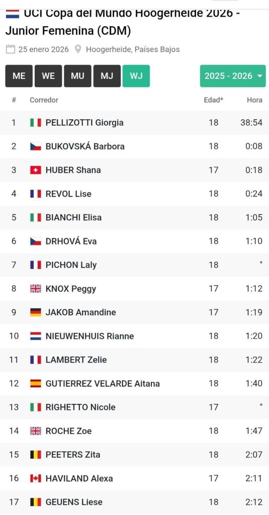Buena actuación de Aitana Gutiérrez para ser 12ª en la carrera júnior de la Copa del Mundo de CX de Hoogerheide. Carla Bañuls ha concluido 22ª y Mirari Gotxi, 24ª.