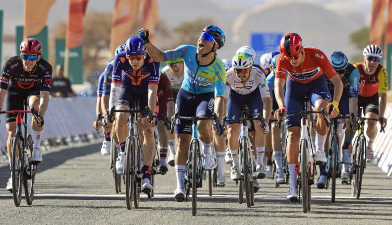 El italiano del XDS Astana, Matteo Malucelli, se lleva la victoria en la 4ª etapa del AlUla Tour tras superar al sprint en Hegra a su compatriota del Lidl-Trek Jonathan Milan. Sin cambios en la general, Yannis Voisard sigue líder, tras estos 173,4 kilómetros de una jornada que partió de Winter Park. Cuando todo parecía preparado para la tercera victoria en la ronda saudí para Jonathan Milan (Lidl-Trek), que ya había lanzado el sprint y cogido la cabeza a falta de 100 metros, Matteo Malucelli (XDS Astana Team) le superó en los últimos tras un bonito duelo.