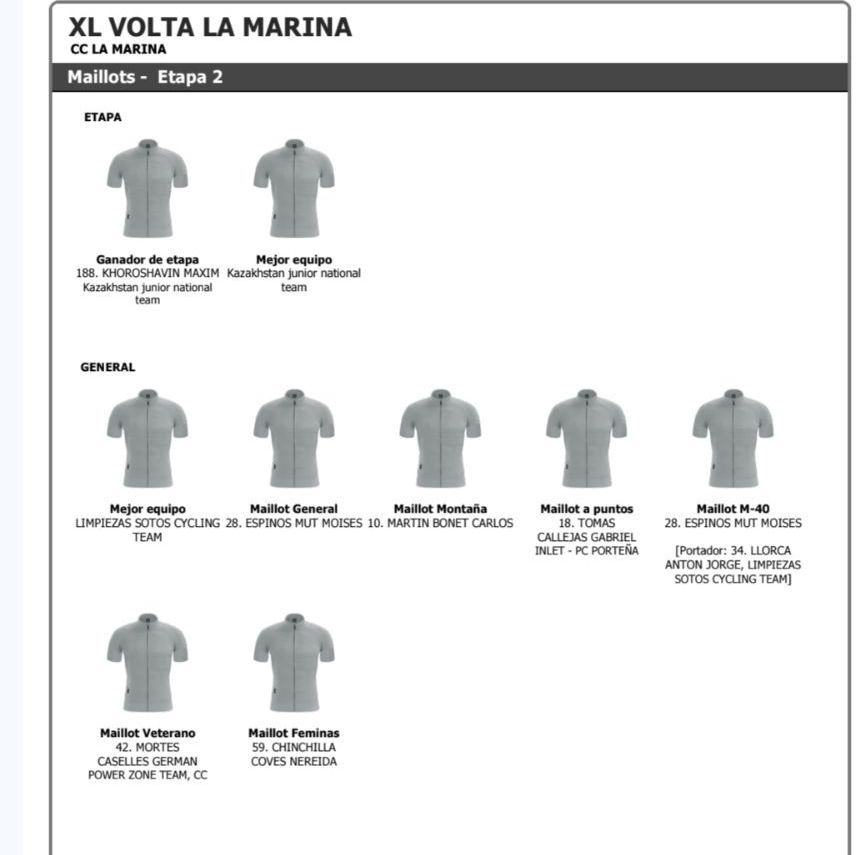 Etapa 2. 17 de enero de 2026. Xàbia (Jávea). 11h. XX Trofeo San Sebastián, con un recorrido de 67 km. Clasificaciones