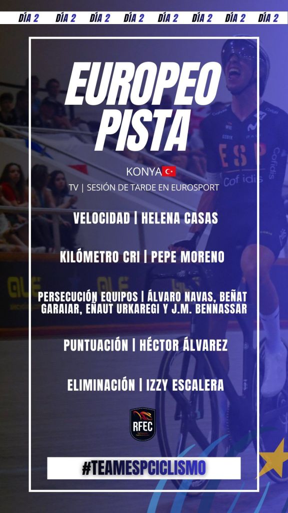 La jornada la han cerrado por la tarde las intervenciones de Eva Anguela en el scratch y Sebastián Mora en la eliminación. Anguela ha concluido el scratch en 15ª posición, mientras que Mora ha sido 20º en la eliminación. Ambos ciclistas tendrán en el ómnium su prueba principal durante este Campeonato de Europa.