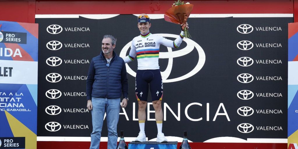 ciclista belga Remco Evenepoel (Red Bull-BORA-hansgrohe) se impuso este jueves en la contrarreloj de la segunda etapa de la Volta a la Comunitat Valenciana, de 17 kilómetros entre Carlet y Alginet, con un registro de 20 minutos y 12 segundos; en una jornada marcada por las fuertes rachas de viento que provocaron que los tiempos registrados no computaran para una clasificación general en la que el eritreo Biniam Girmay (NSN Cycling Team) sigue al frente.