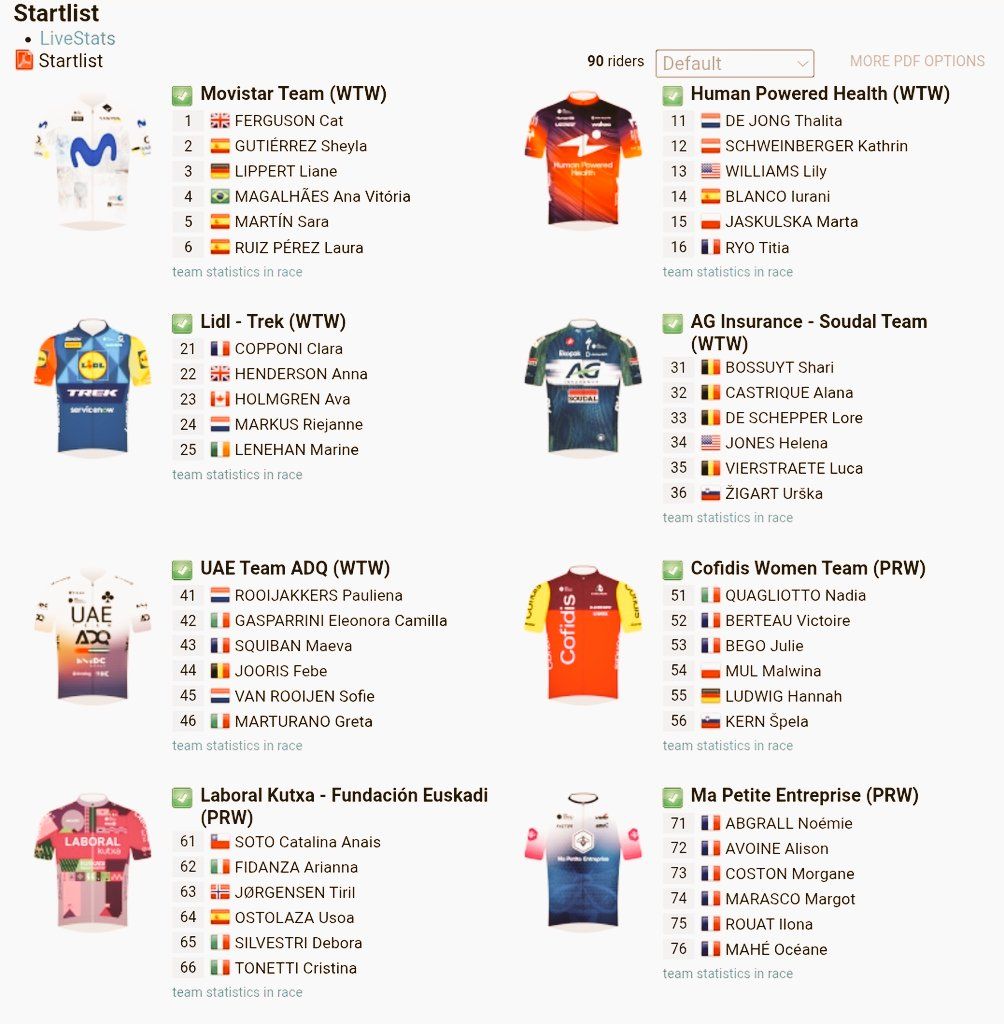 Proteams: Laboral, M apetite Enterprise, Valker Wessels Cycling Team, Cofidis Women Team, Winspace.