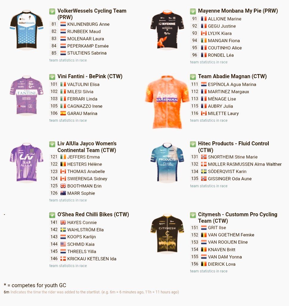 Continental Teams: DD Group Pro Cycling Team, Team Abadie-Magnan, Liv Alula Continental, RedChilly Bikes O, Bepink, Hitec.