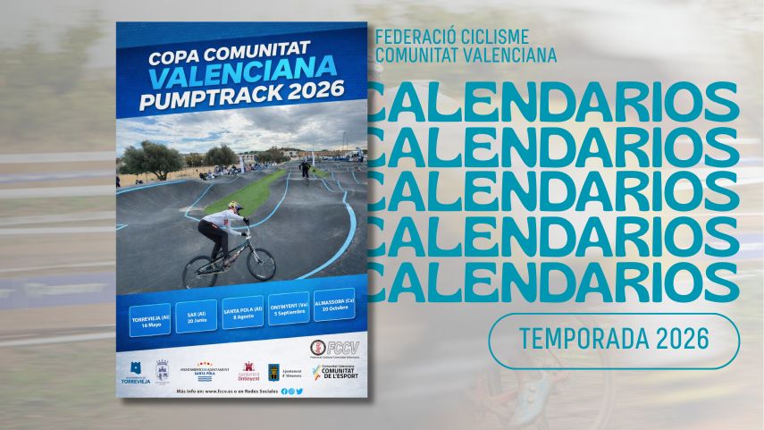 La Federació de Ciclisme de la Comunitat Valenciana presenta el calendario de la Copa Comunitat Valenciana de Pumptrack 2026, una competición que volverá a recorrer distintas sedes de la Comunitat Valenciana con cinco citas entre los meses de mayo y octubre, y que reunirá a riders de diferentes categorías en una disciplina que está, en pleno crecimiento.