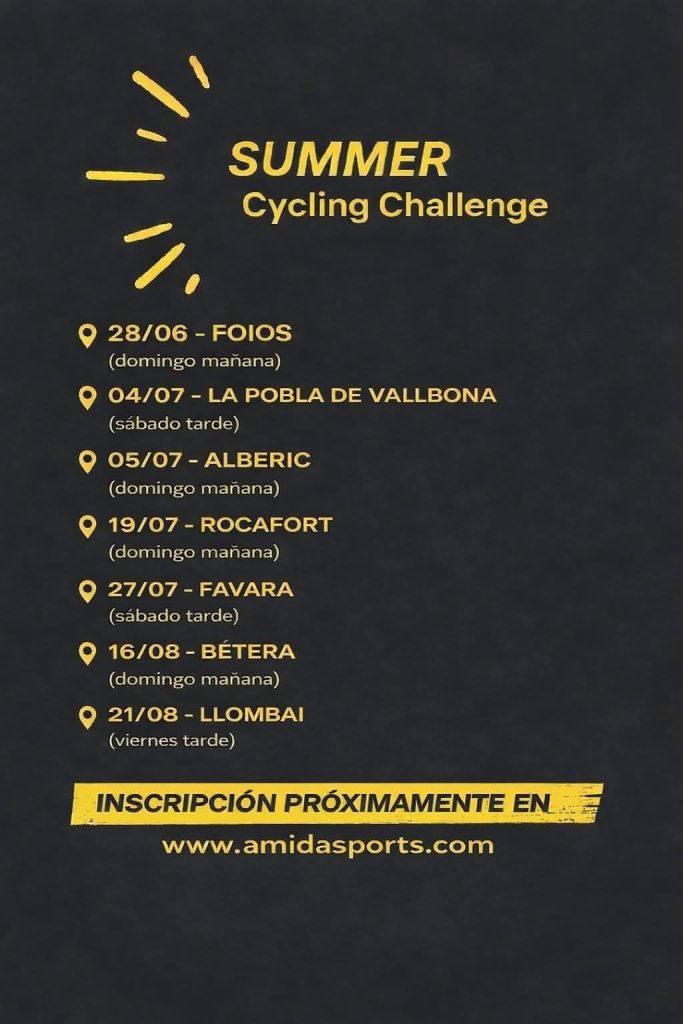 La Summer Cycling Challenge vuelve con nuevas incorporaciones y las pruebas clásicas que repiten, consolidándose al 100% como la competición ciclista de referencia del verano en la Comunitat Valenciana.